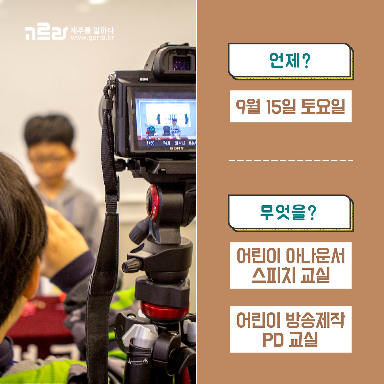 오는 9월 15일 토요일 고르라 제주 사무실에서 진행되는 어린이 스피치 교실 특강 놓치지마세요! 지금부터 집중! 특강 시간 및 다양한 정보 안내해드리겠습니다.