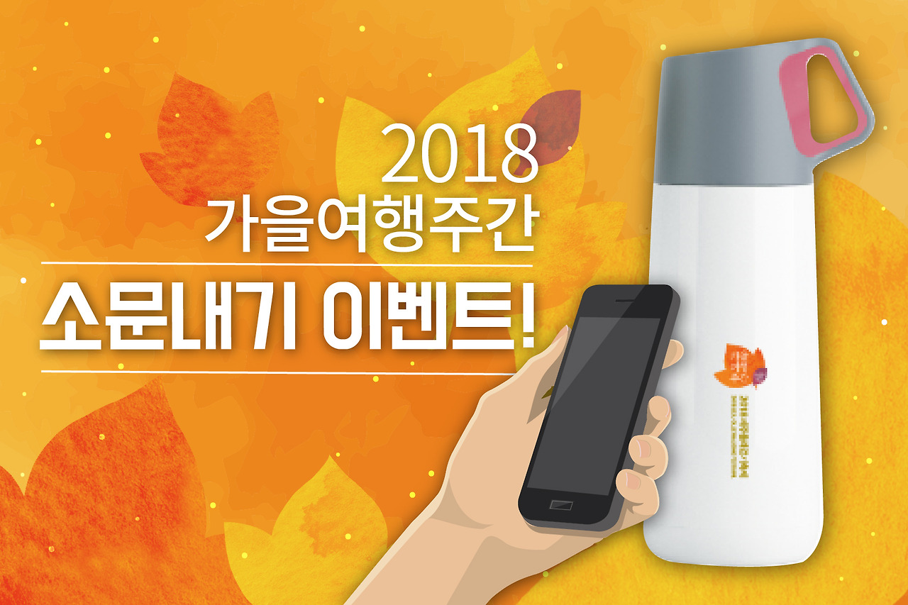 그중에서도 첫 번째 이벤트인 '2018 가을여행주간 소문내기 이벤트'! 이벤트 참여 방법은 하단의 페이스북 링크를 타고 해당 게시물을 공유한 뒤 댓글만 남기면 끝! 알록달록 예쁜 텀블러를 경품으로 받을 수 있답니다^^ 참 쉽죠~?