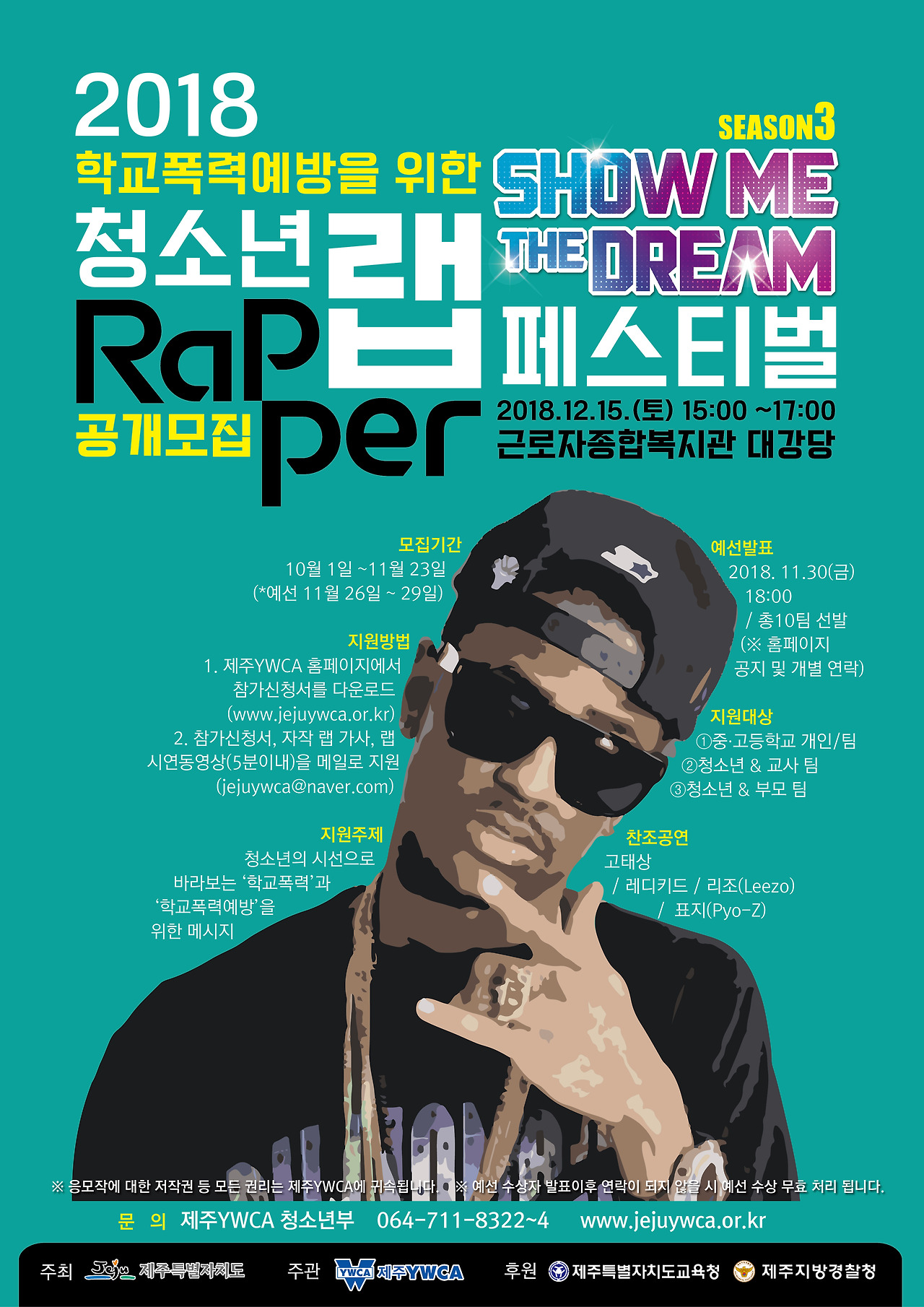 제주특별자치도가 주최하고 제주 YWCA가 주관하며 제주특별자치도교육청과 제주지방경찰청에서 후원하는 청소년 랩 페스티벌!