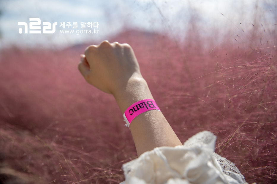 마노르블랑의 핑크뮬리 축제 기간은 11월 말까지 진행되며, 축제 기간 동안은 입구에서 음료 주문 후 입장권인 팔찌를 받고 입장하실 수 있어요.