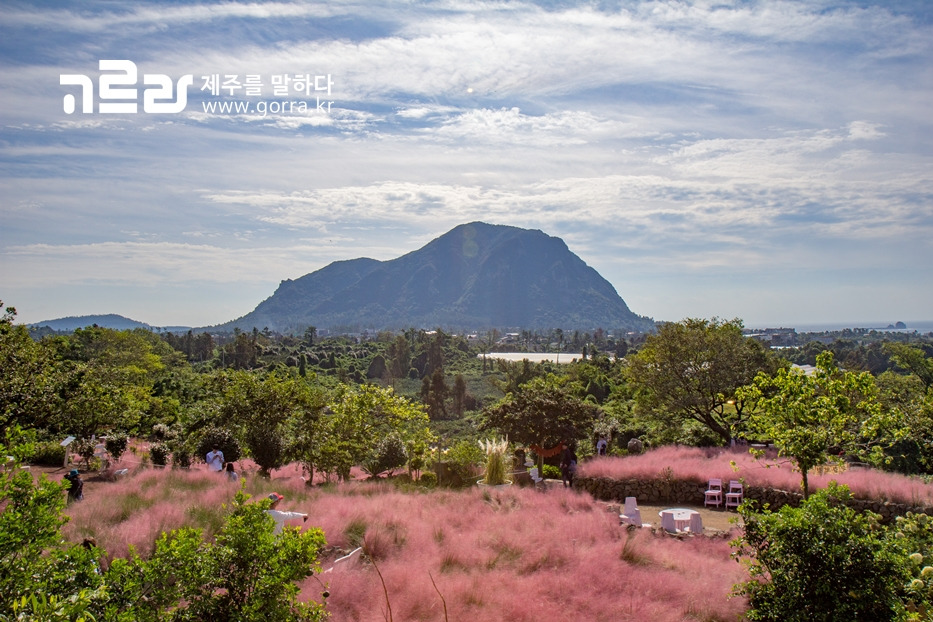 전국 곳곳에 핑크뮬리가 생겨나지만 뷰는 단연 마노르블랑이 1등이에요! 산방산과 형제섬, 송악산, 단산 등이 다 보인답니다!