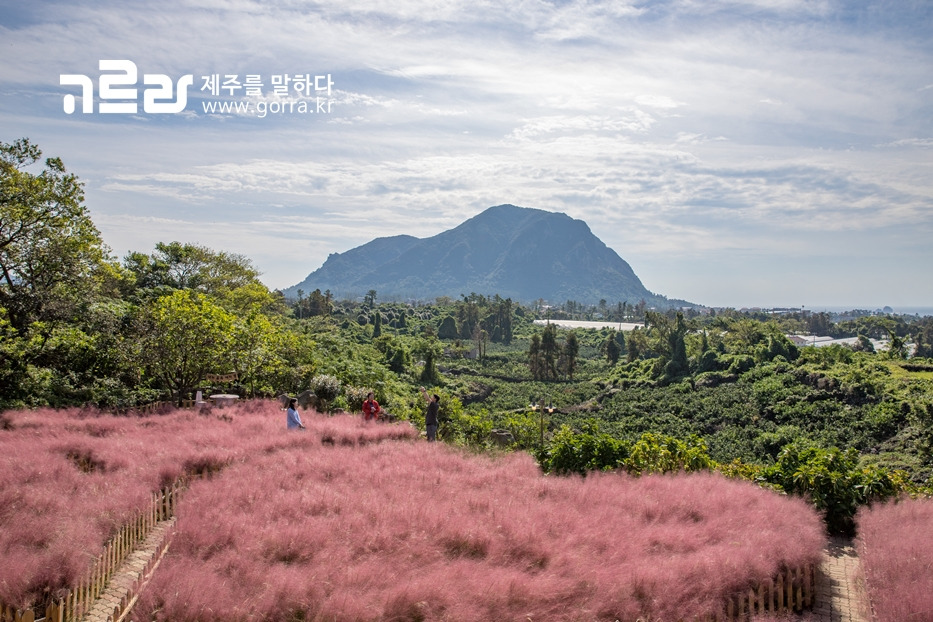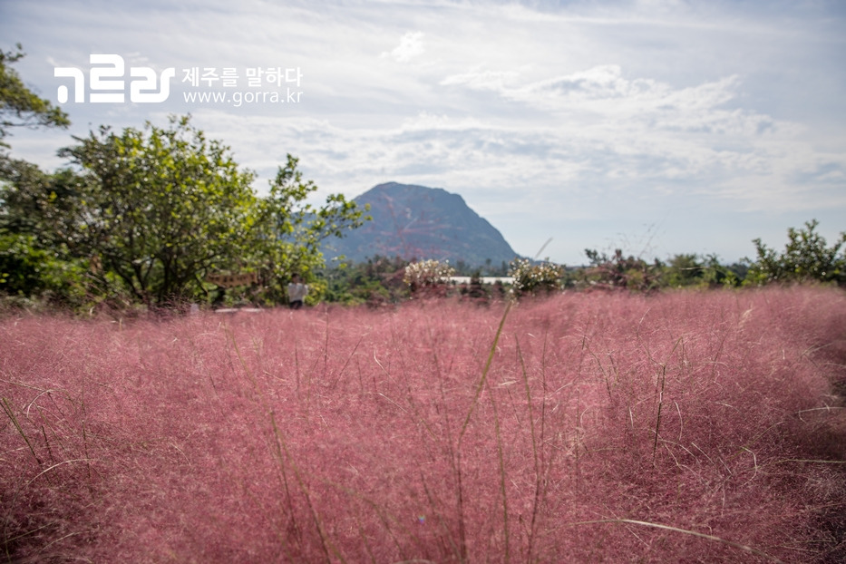 핑크뮬리는 10월부터 11월까지 볼 수 있으며, 기존의 제주도 가을을 대표하던 억새나 단풍과 함께 최근 뜨고 있답니다.