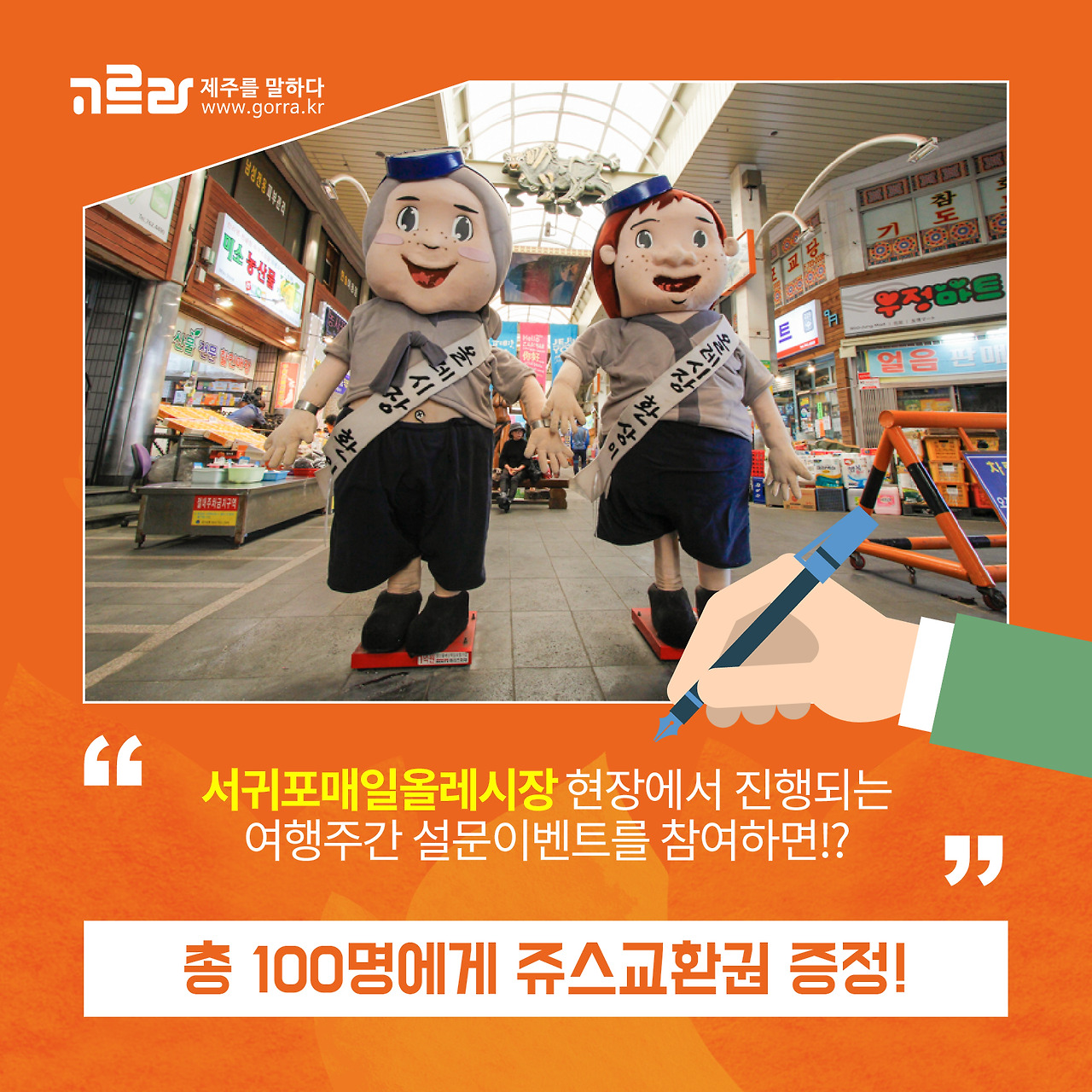 그리고 가을여행주간 설문 이벤트에 참여하시는 100명에게 주스 교환권이 증정된다고 하니 더욱 즐겁게 시장 구경을 할 수 있겠죠~?