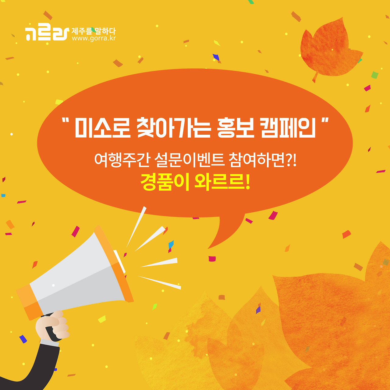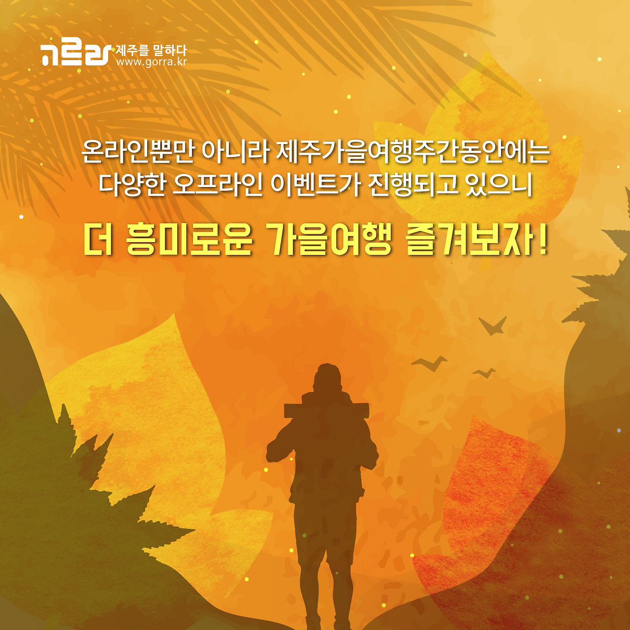 가을여행주간 제주 홍보 이벤트에 참여해서 여행도 즐기고~ 다양한 경품도 얻고~ 짧은 가을을 제대로 만끽할 수 있는 기회를 놓치지 마세요!