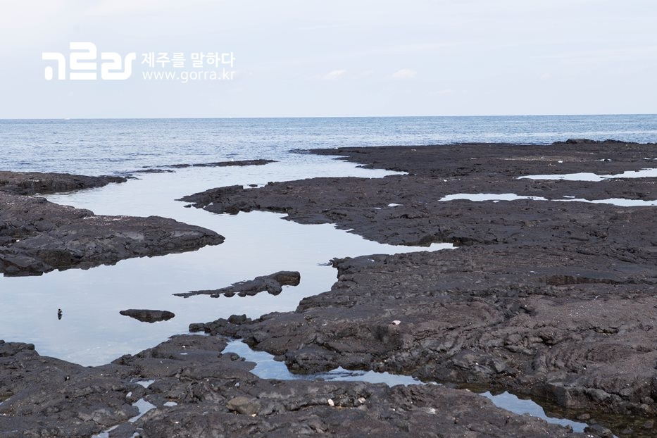 조간대는 밀물일 때에는 바닷물에 잠기고 썰물일 때에는 드러나는 해안선 사이의 부분을 말하는데요. 완만한 빌레 지대가 바닷속까지 질펀하게 퍼져있는 바당빌레길의 해안은 썰물 때면 드넓은 조간대가 펼쳐진답니다!
