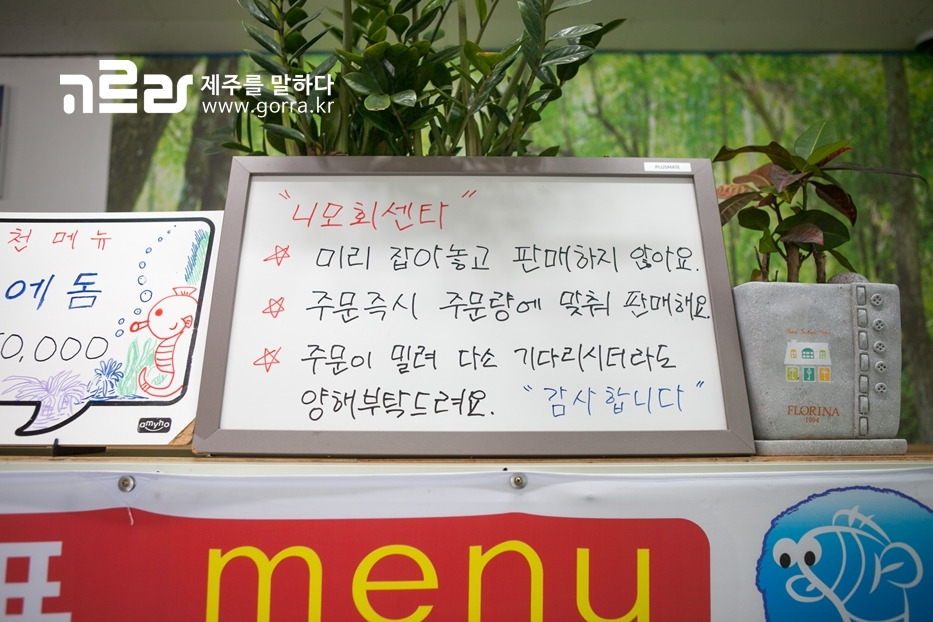 니모회센터의 영업시간은 오후 5시부터 오후 11시까지로, 서귀포 매일올레시장보다 늦은 시간까지 영업하기 때문에 야식으로도 즐길 수 있다는 점! 그리고 매주 수요일은 휴무이니 참고해주세요^^
