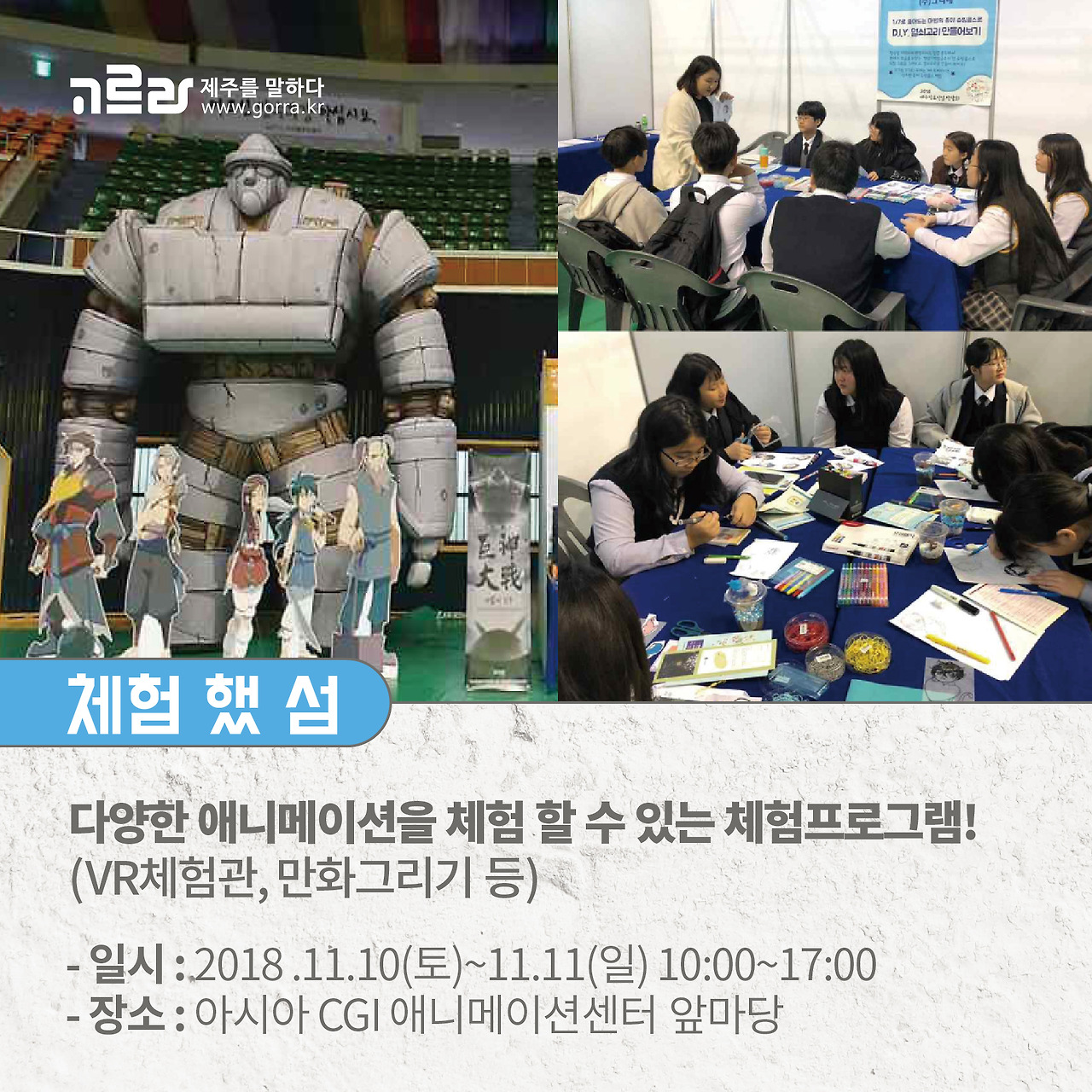 다양한 애니메이션을 체험 할 수 있는 체험프로그램, '체험했 섬'! 10일, 11일 이틀동안 오전 10시부터 오후 5시까지 진행이 되는데요.