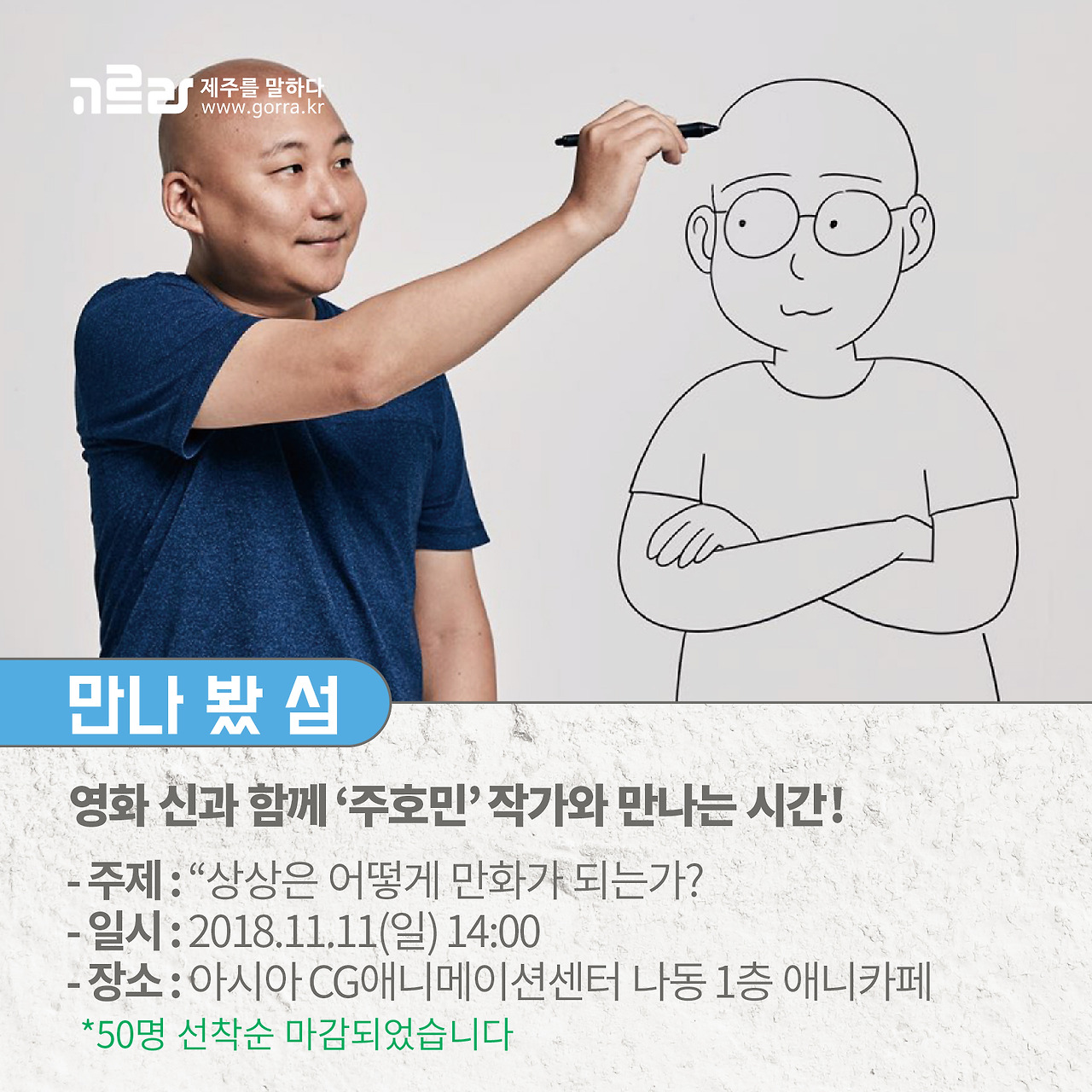 영화 신과 함께 '주호민' 작가와 만나는 시간 '만나봤 섬'! '상상은 어떻게 만화가 되는가?'라는 주제로 강연이 진행 되는데요.
