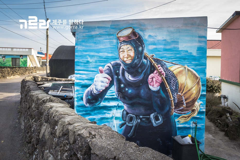 제주 성산읍에 위치한 성산리 벽화마을. 이곳은 바람코지 벽화마을이라고도 하는데요. 바람이 머물다 가는 곳이라는 이쁜 의미의 '바람 코지'. 쉬었다 가는 곳이라는 순수 제주도 사투리랍니다.