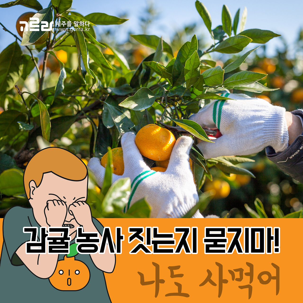 제주도에 살고 있다고 해서 모두가 감귤 농사를 하고 있지는 않다는 사실! 알고 계셨나요? 제주도민 중 약 40%만이 감귤농사를 짓고 있다고 하니 50%도 안되는 비율이죠~ 게다가 제주도민의 20%는 겨울에 감귤을 사먹는다고 하네요. 그러니 제주가 고향이라고 해서 감귤농사 짓느냐고 묻는 말은 상대방에게 실례가 될 수도 있으니 기억해주세요~