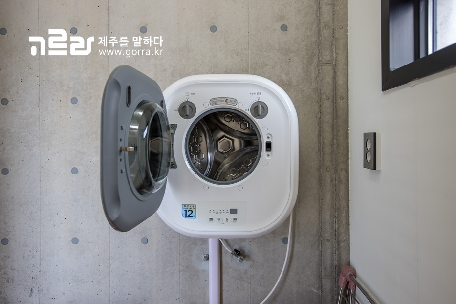 여행 중 세탁 걱정은 NO~ 102스테이에 마련된 세탁실에는 벽걸이형 미니세탁기와 액체 세제, 섬유 유연제가 구비되어 있어 간단한 세탁이 가능하다는 사실!