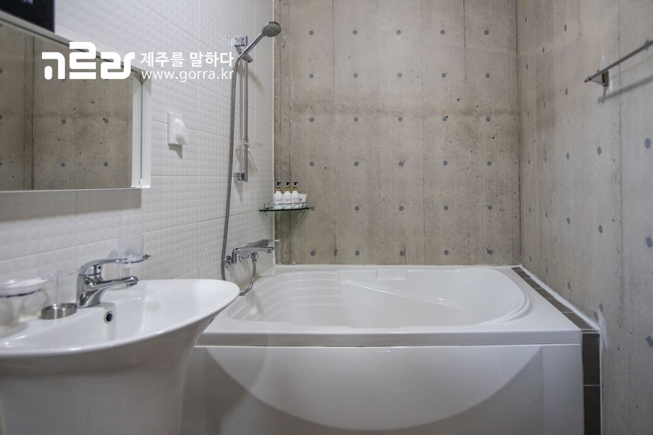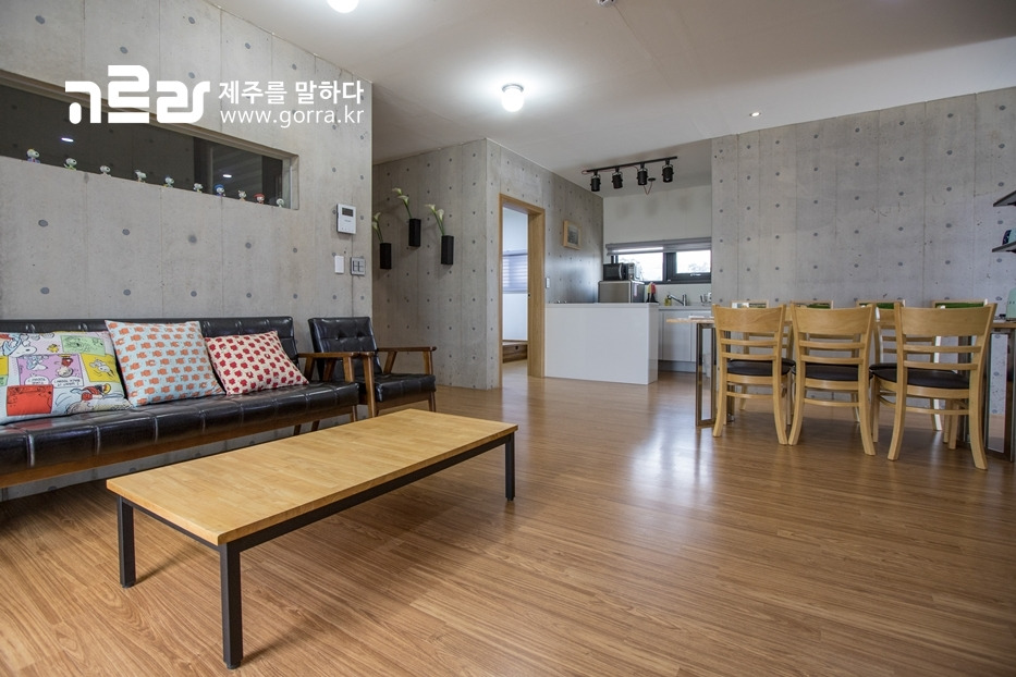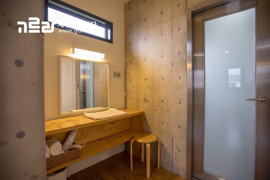 102스테이는 골조 공사 8개월, 내 외장 공사 6개월을 합쳐 14개월이 걸린 만큼 구석구석 섬세한 손길이 묻어있습니다. 실내는 수성 천연소재로 처리 · 마감한 콘크리트로 완성되었기 때문에 콘크리트 냄새도 전혀 나지 않으며 환경 걱정은 안 해도 된다는 점!