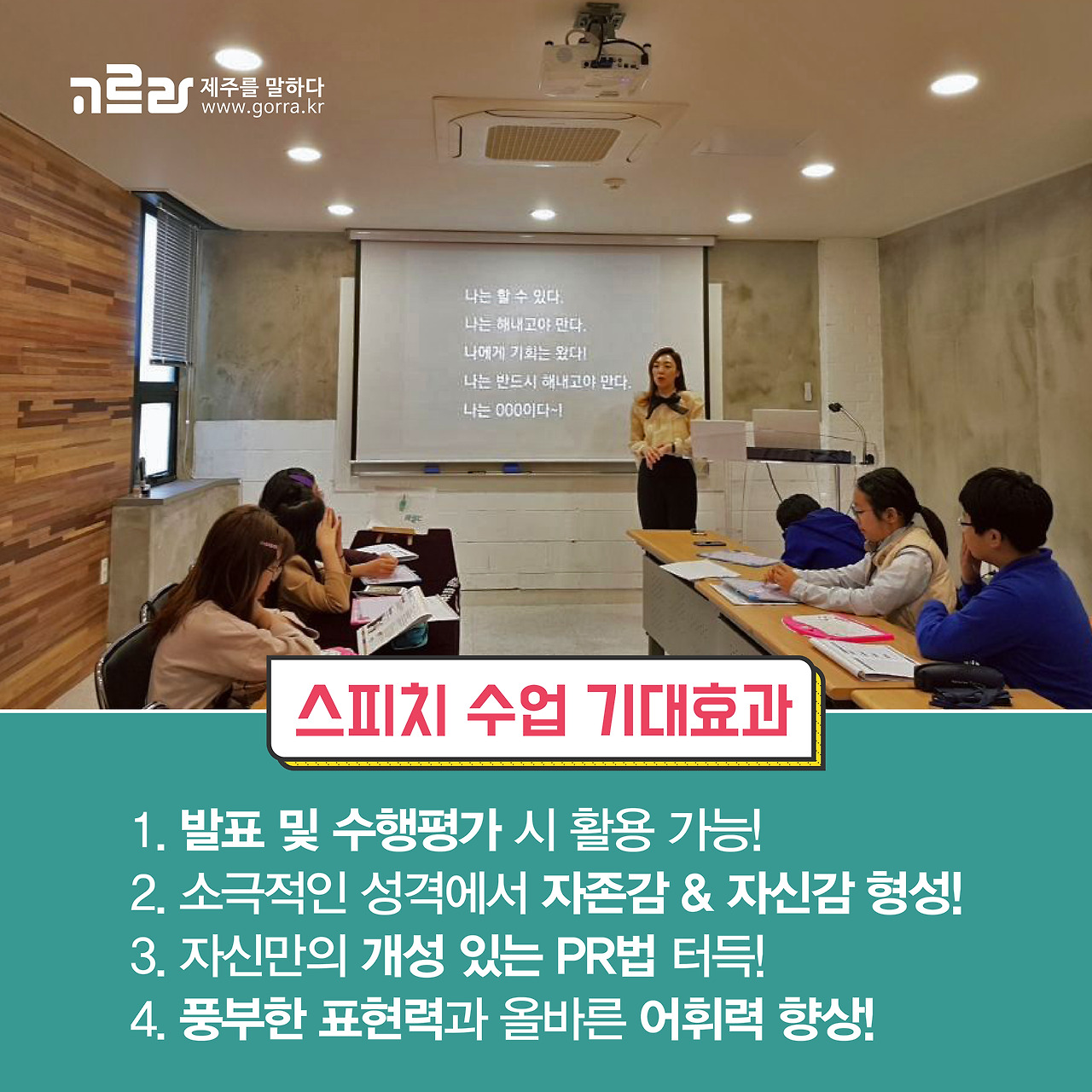이밖에도 1월 스피치 특강에서는 고르라제주 미디어 채널을 통해 리포터 / 아나운서 / VJ / 유튜버 활동 기회가 제공된다고 하니 평소 숨겨왔던 끼를 펼치기에 좋은 기회가 되겠죠~?
