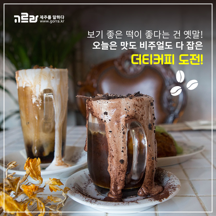 사진 속 더티커피 메뉴는 핸드드립커피에 초코 크림을 얹은 '초코비엔나'와 진한 달달함이 매력적인 '카라멜 크림'! 두 커피는 베스트 메뉴로 이미 많은 사람들에게 사랑받고 있다는 사실~ 또한 카페 어떤오후는 커피머신 없이 모든 커피 메뉴를 핸드드립으로 내려서 제공하고 있으니 이 점도 참고해주세요^^