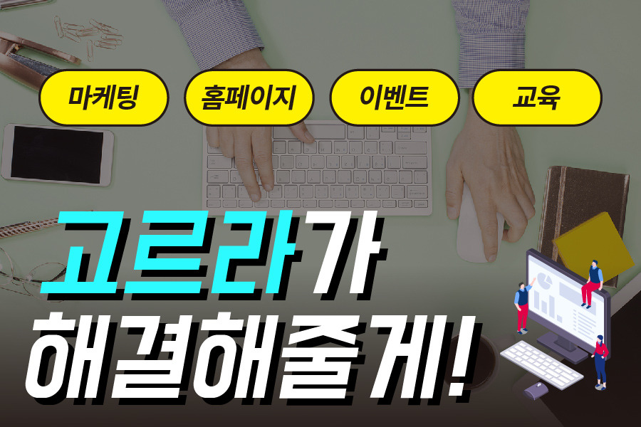 2018년 예비사회적기업으로 선정된 고르라는 각 분야 최고의 회사 4개가 합쳐 설립된 곳이랍니다. 온라인 마케팅, 홈페이지 제작, 행사대행, 교육 4가지 분야에서 활약하고 있는 고르라에 대해서 알려드릴게요!