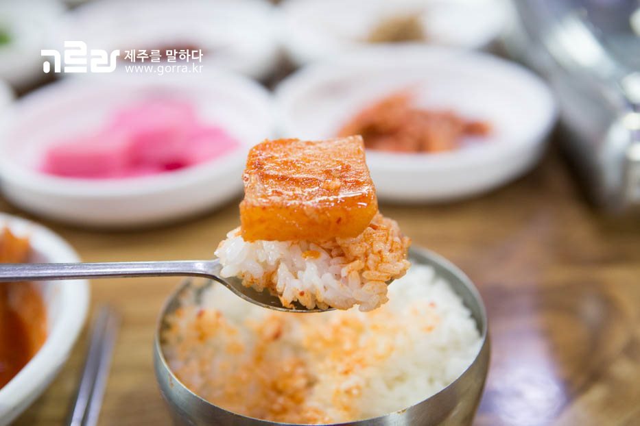통통한 갈치살을 발라내 따끈따끈한 흰 밥 위에 얹어 먹으면 추위도 금방 잊혀진답니다. 또한 달큼한 조림무 역시 갈치조림에서 빠질 수 없지요!