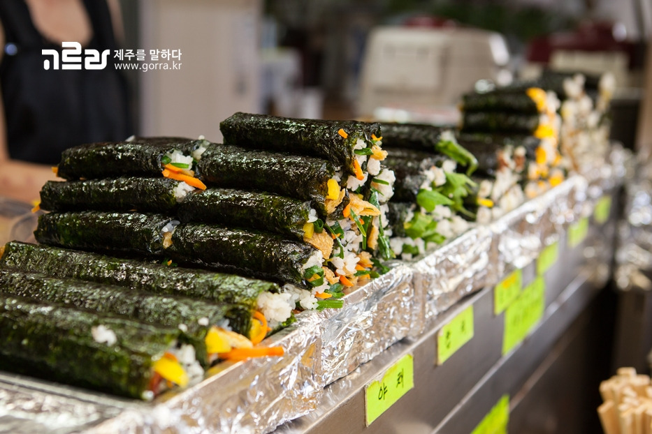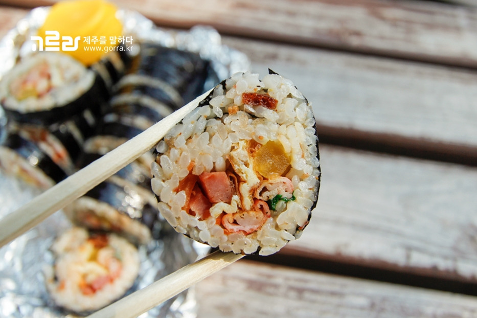 오는정김밥은 연예인 맛집으로 알려질 정도로 워낙 유명한 김밥집이죠? 제주도 3대 김밥집 중 하나로 꼽히는 이곳의 특별함은 밥 안에서 바삭하게 씹히는 유부튀김 가루에 있습니다. 두 줄 이상 포장해가는 손님에게만 판매하는 곳이니 참고하세요!