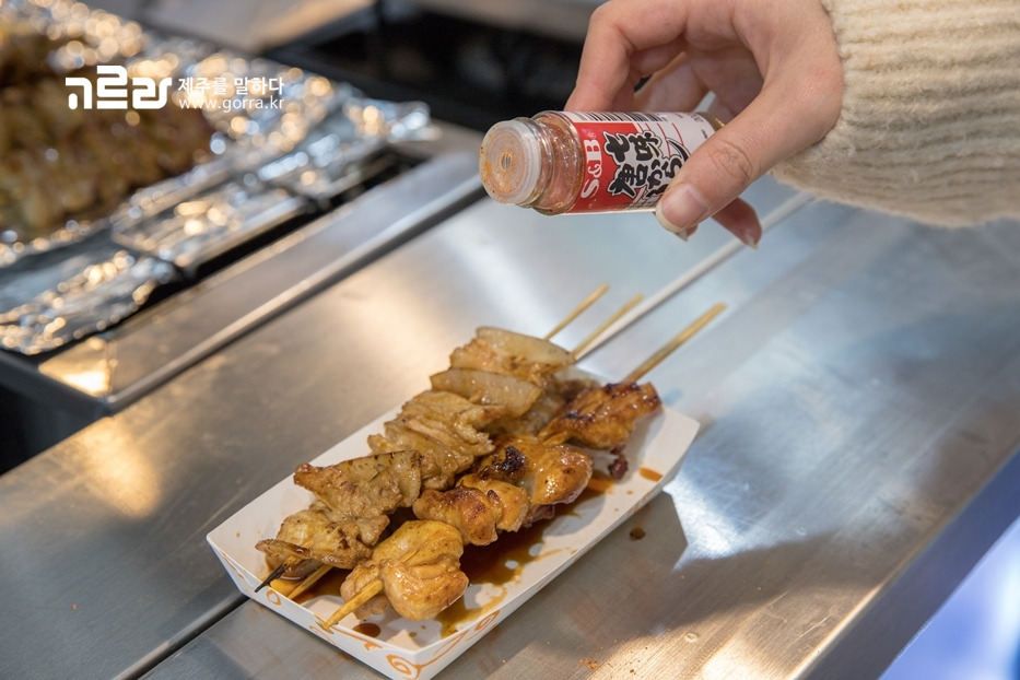 서귀포매일올레시장 맛집인 우정회센타에서 같은 시장에 낸 꼬치집으로, 흑돼지꼬치와 닭꼬치, 소떡소떡 3종 세트를 주력 판매하고 있어요. 신선한 메뉴를 주문 즉시 숯불에 구워줘 입안에 불맛이 가득! 일본 향신료 시치미의 특별한 향까지 더해 드실 수 있어요.