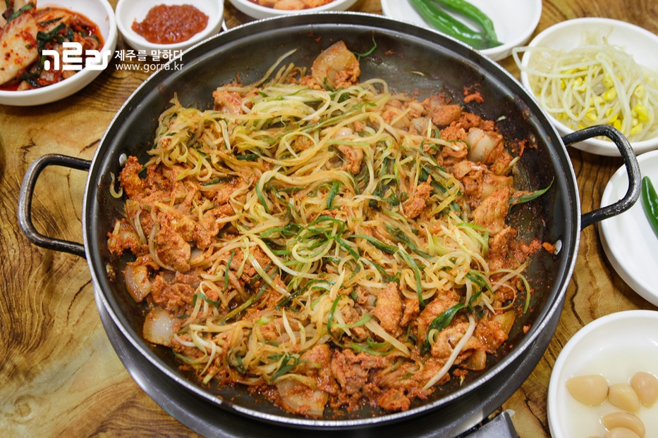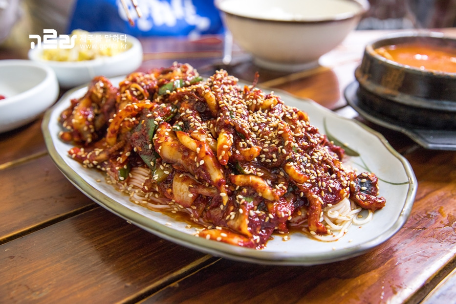 낙지볶음 17년 외길 인생! 신제주 낙지골목에 위치한 시골길은 소주가 간절해지는 매콤한 낙지볶음으로 유명한데요. 통통한 낙지를 잘 버무려낸 낙지볶음은 불금 소주 안주로 딱이라는 점! 사람들의 발길을 잡아끄는 구수한 청국장도 인기랍니다.