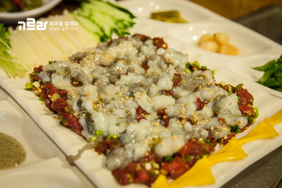제주시 도남오거리에 위치한 탕탕이 1호점은 소주 안주에 딱인 육낙탕탕이를 판매하는 곳입니다. 육낙탕탕이는 이름 그대로 탕!탕! 내리친 생물 낙지와 육회를 노른자에 무쳐낸 메뉴인데요. 세 가지 소스가 제공되기 때문에 입맛 따라 즐길 수 있다는 사실!