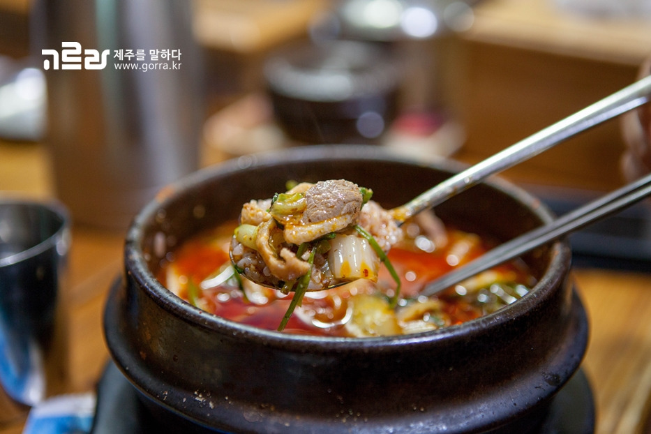 뚝배기에 다양한 재료를 넣어 팔팔 끓여낸 만큼 국물이 진하고 걸쭉합니다. 이게 바로 진국이 아닐까 하는데요.