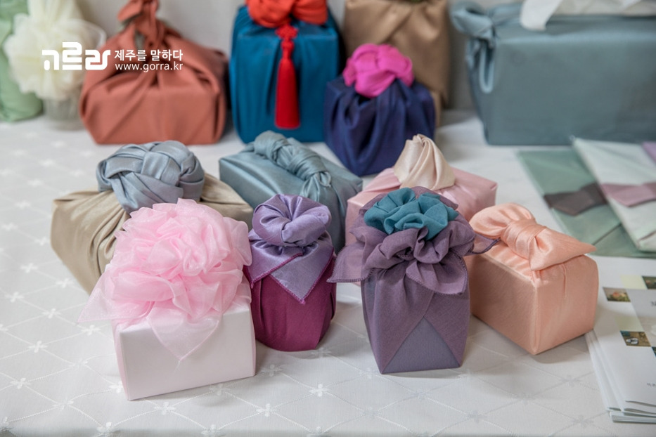 오늘날에 이르러 보자기는 예술의 한 분야로 자리 잡았는데요. 보자기아트는 "보자기꽃"이라고 불릴 정도로 전통의 미를 간직하고 있답니다. 제주에서는 지문선의 보자기마음에서 진행하는 보자기아트 강좌를 통해 만날 수 있어요.