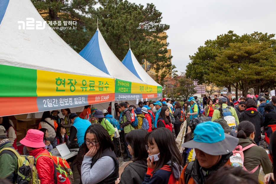 걷기 코스는 양일 모두 5㎞, 10㎞, 20㎞로 이뤄져 있어 참가자 본인이 하나를 택해 임하면 됩니다. 모든 코스의 시작과 끝은 제주월드컵경기장이지만 대회 첫날은 법환해안도로, 둘째 날은 혁신도시로 이어지는 차별화된 코스이니 이틀 모두 참가해도 좋답니다.