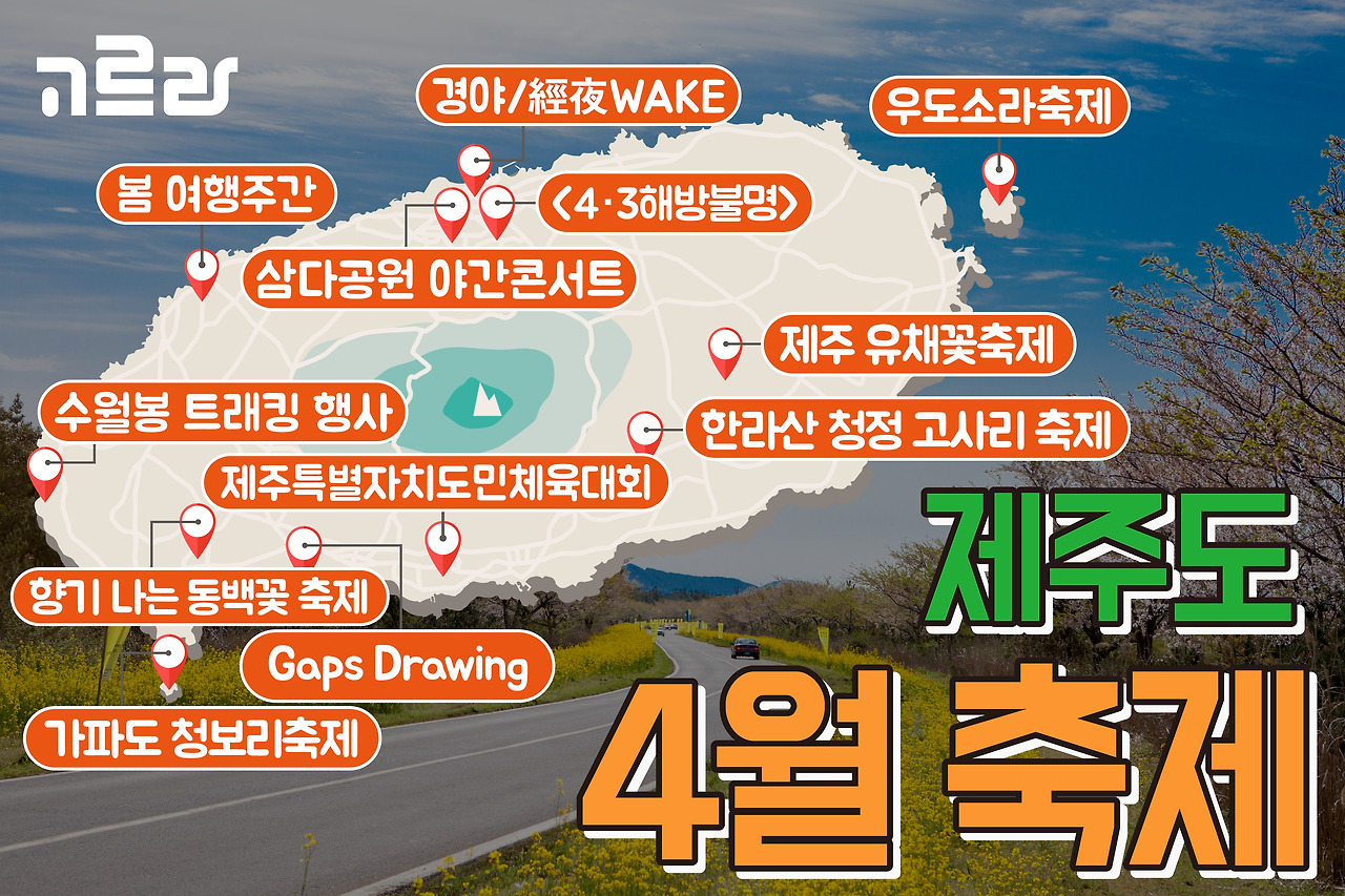 4월은 무르익은 봄 공기가 걸음마다 감도는 포근한 달입니다. 제주에서는 제주4·3이라는 아픈 역사가 발생한 달이자 만개한 봄꽃들이 지천에서 빛나는 다단한 달이지요. 앞으로 한 달간 제주에서 열리는 다채로운 축제들을 <제주도 4월 축제>로 묶어 소개합니다.