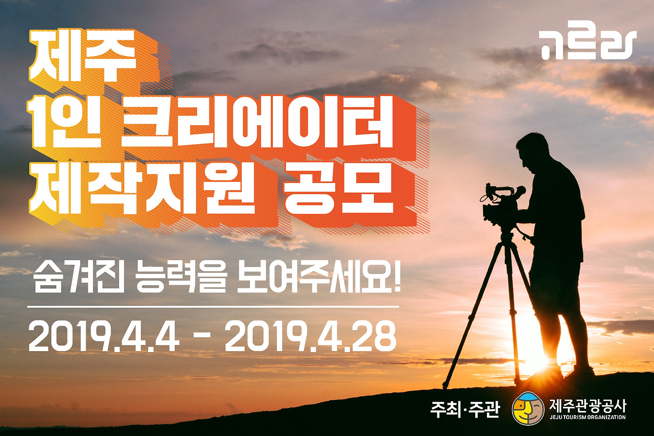 여행, 문화, 일상, 음식, 정보 등 제주 여행과 관련된 영상을 제작하는 1인 크리에이터를 찾고 있는데요! 2019년 4월 4일부터 4월 28일까지 모집이 진행되며 5월 내에 교육이 이뤄진다고 합니다.