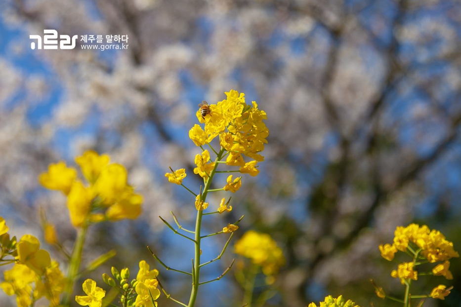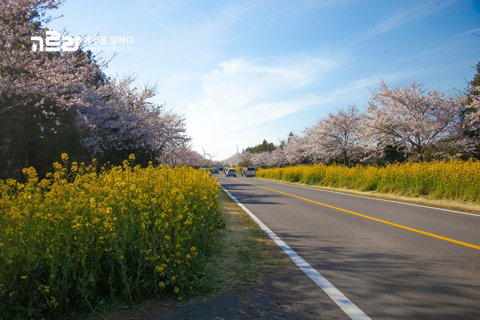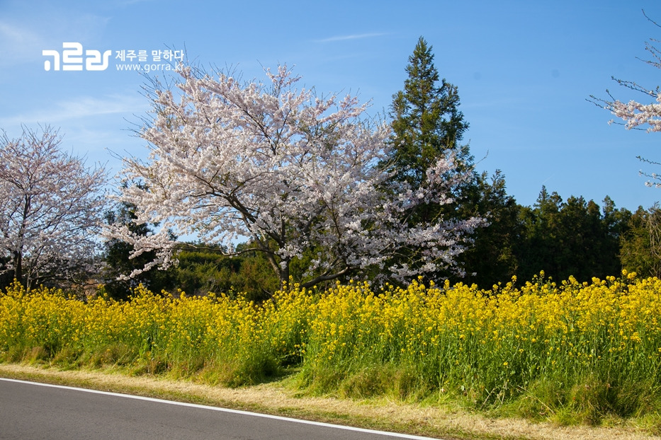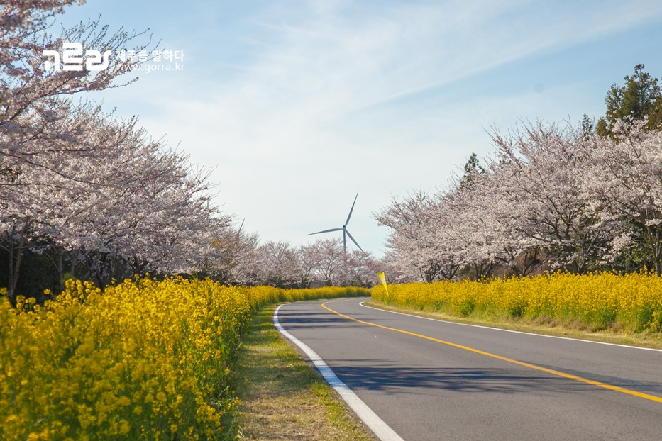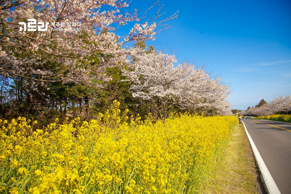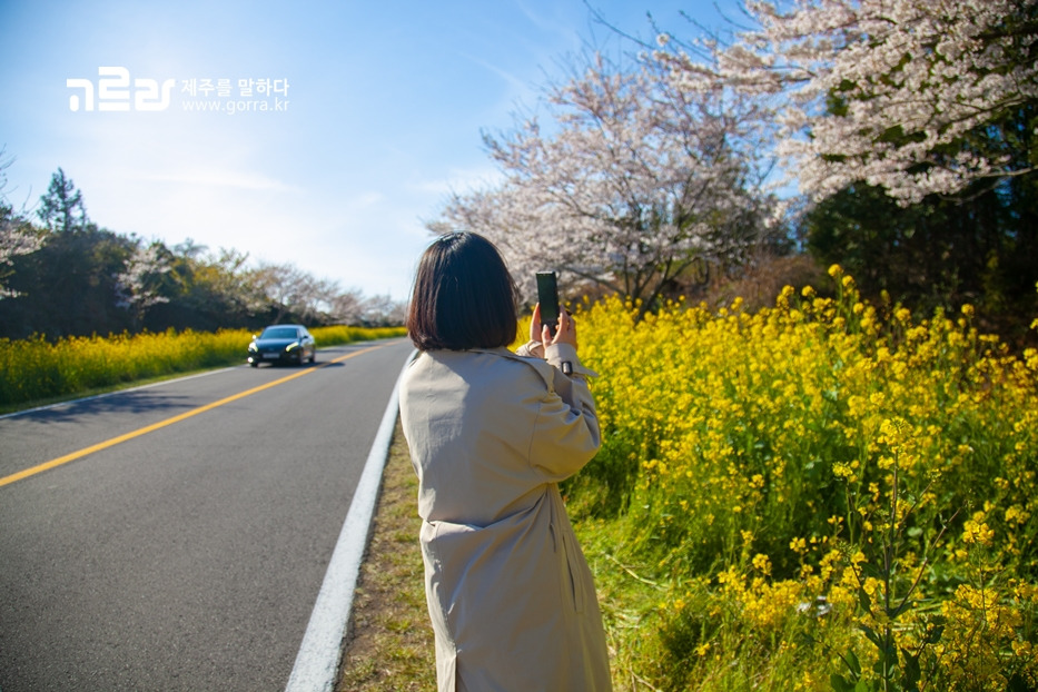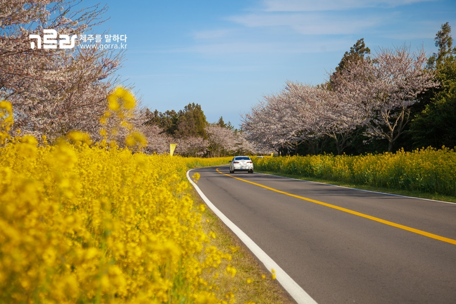 지금 가시리 녹산로를 찾으면 벚꽃과 유채꽃이 환하게 만개한 광경을 볼 수 있습니다. 녹산로는 사계절 다른 꽃을 피워내며 동화 같은 아름다움을 자랑하지만, 이 길의 아름다움이 최고조에 달하는 때는 바로 지금이라는 사실!