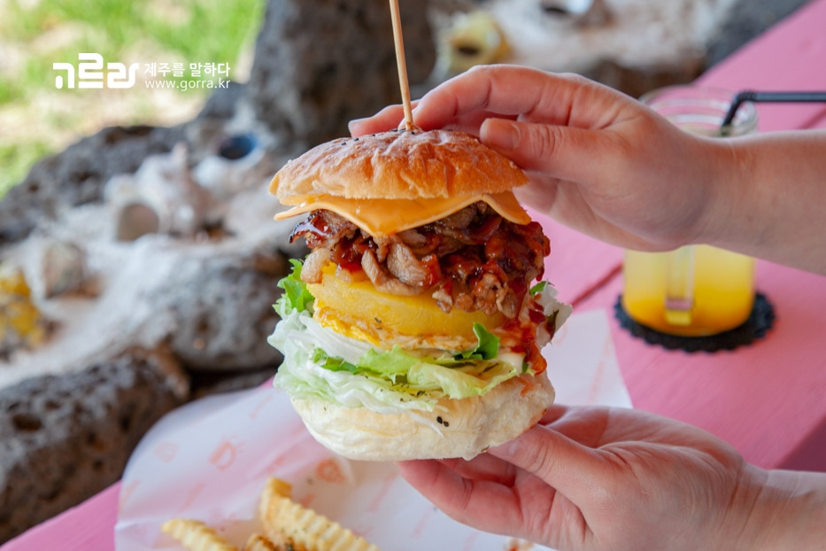 <피노키오> 사장님은 우도에서 해녀로 일하며 전문 수제버거집을 운영 중이랍니다. 하나의 수제버거에 일반 패티와 함께 잘게 썬 스테이크를 넣은 특허 받은 수제버거로 유명한 곳이에요.