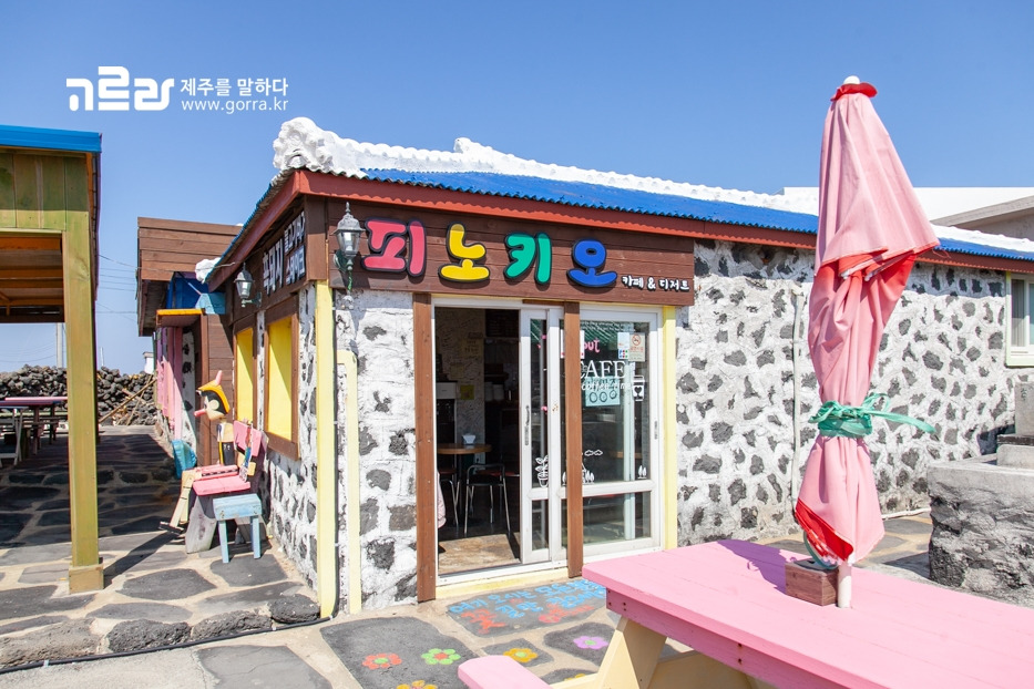 우도에 도착해 해안로를 따라 달리다 보면 눈에 들어오는 모든 풍경이 두고두고 곱씹을 한편의 시와 같다는 느낌을 받게 됩니다. <피노키오>는 해안도로를 가다 굽이길을 돌면 나오는 예쁜 맛집이에요.