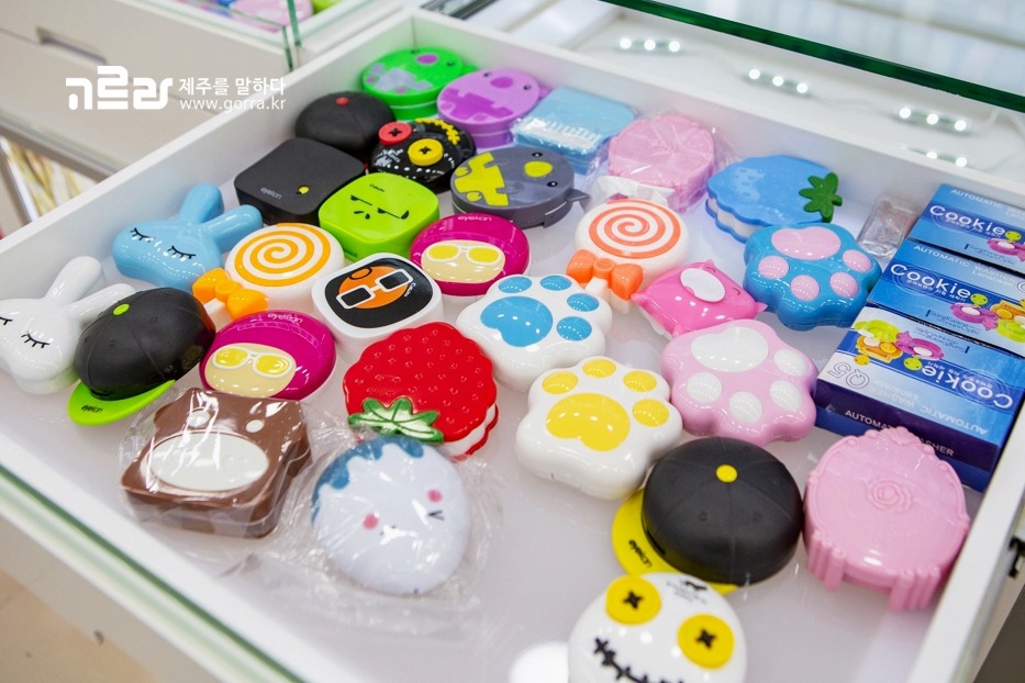 렌즈 케이스는 주위에서 흔히 볼 수 있는 평범한 케이스도 있지만, 이름을 써놓지 않아도 누구의 렌즈케이스인지 알 것만 같은 개성 강한 케이스가 가득하다는 점!