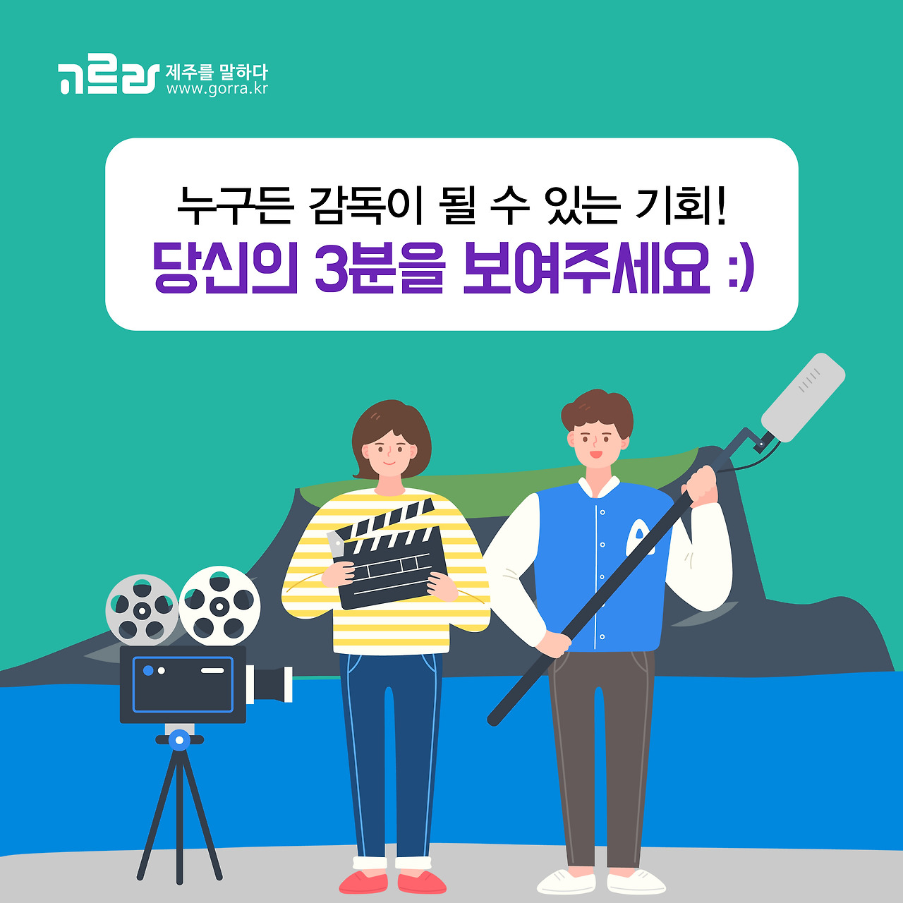 서귀포와 당신의 스토리를 기다리고 있는 서귀포 3분 관광영화제! 서귀포에 흐르는 숨은 이야기와 풍경, 누군가에게 들려주고 싶은 메시지가 있다면 3분 영화 제작에 도전해 공모에 참여해보세요!