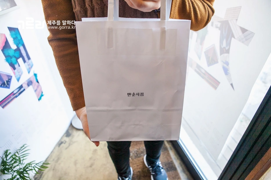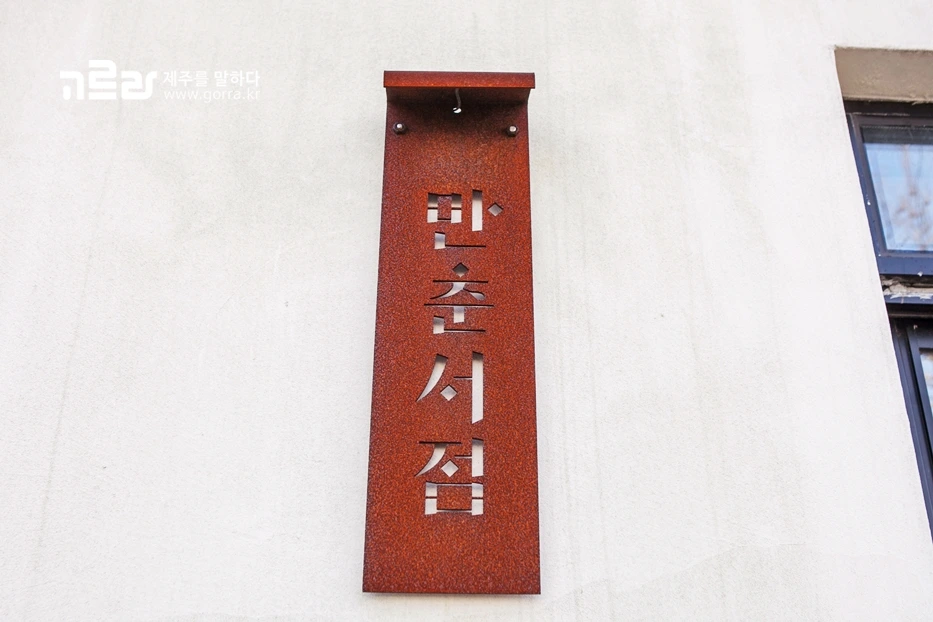 만춘서점은 야자수와 돌담이 어우러진 이국적 풍경 속에 스며있는 작은 책방이에요. 새하얀 건물은 조각 케이크를 닮은 뾰족한 세모꼴을 하고 있는데요. 이 작은 공간은 10평이 채 되지 않지만 뭇사람들의 발길을 붙잡는 묘한 힘을 지니고 있습니다.
