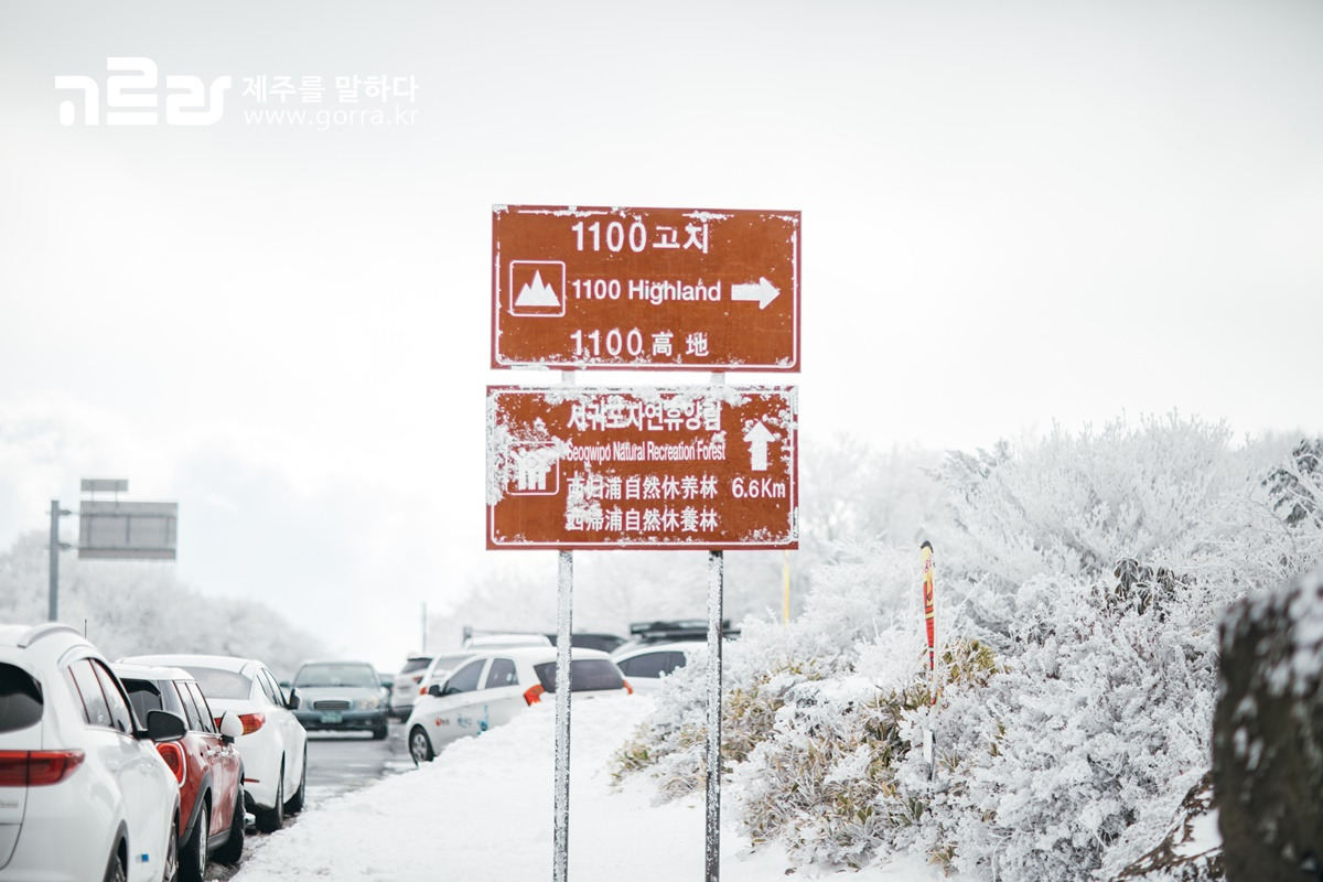 찬바람이 세차게 불어오고 공기가 차가워지는 본격적인 겨울과 함께 12월이 시작되면, 한라산은 하얀 눈이 소복소복 쌓이기 시작합니다. 한라산의 웅장하고 아름다운 설경을 가장 이쁘게 담을 수 있는 1100고지. 우리가 오늘 이야기하는 1100도로에 위치하고 있는 곳인데요.
