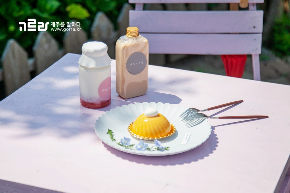 커피는 스페셜티 원두만을 고집한다는 마노르블랑. 커피 이외에도 밀크티, 생과일 라떼 등 정원에서 인증샷 찍기에 제격인 다양한 음료를 판매한답니다. 먹기 아까울 정도로 예쁜 디저트 또한 빼놓을 수 없어요.