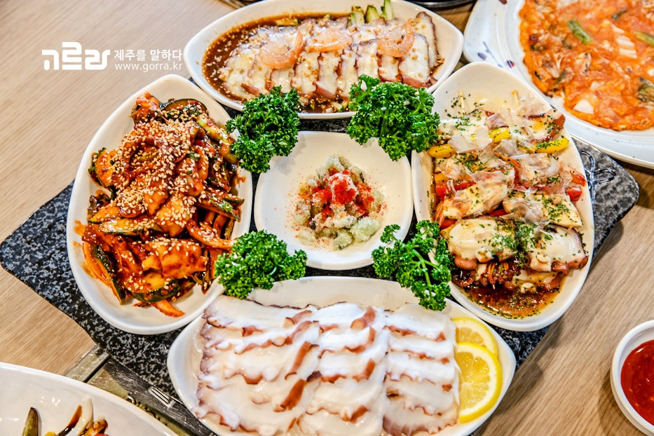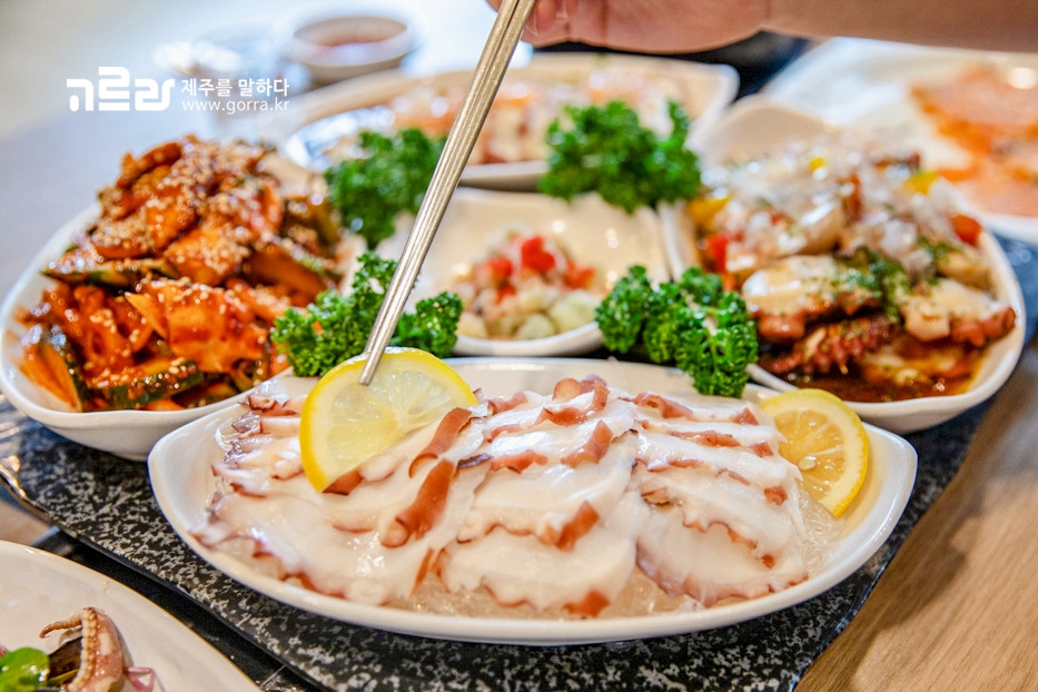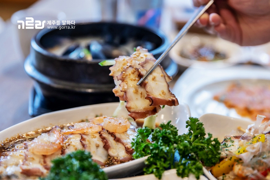 문어는 제주어로 '물꾸럭' 또는 '문게'라고 부른다는 사실! <문게야>는 그 이름처럼 문어를 전문적으로 취급하는 곳인데요. 싱싱한 제주산 돌문어를 알찬 구성으로 맛볼 수 있어 식사, 모임 장소로 사랑받고 있습니다.