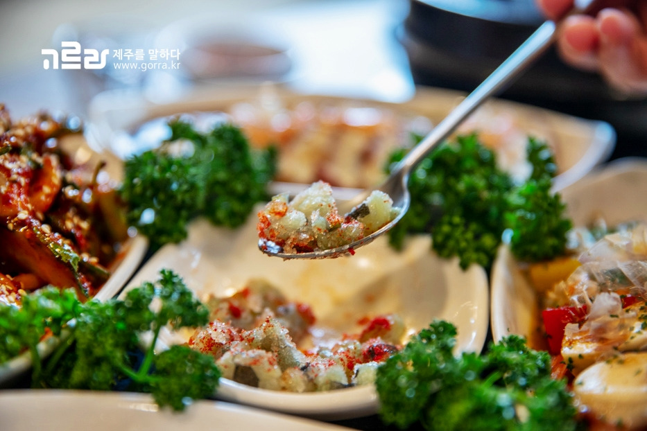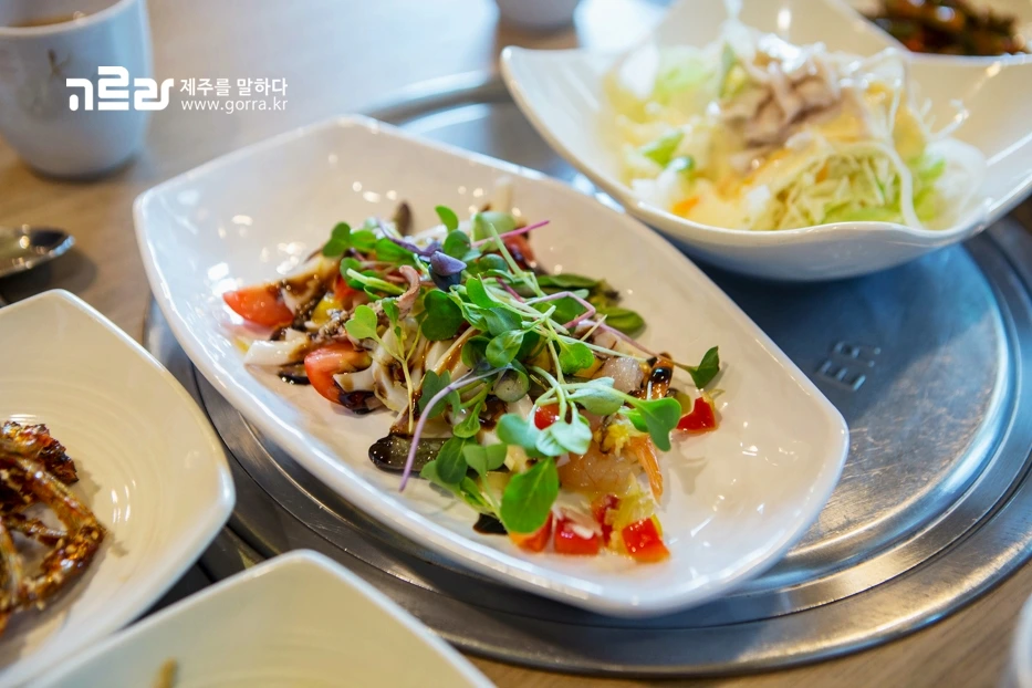 모둠세트를 주문하면 여러 가지 밑반찬과 상큼한 문어샐러드가 같이 나오는데요. 밑반찬 하나하나마다 깔끔함과 정갈함이 묻어난답니다.
