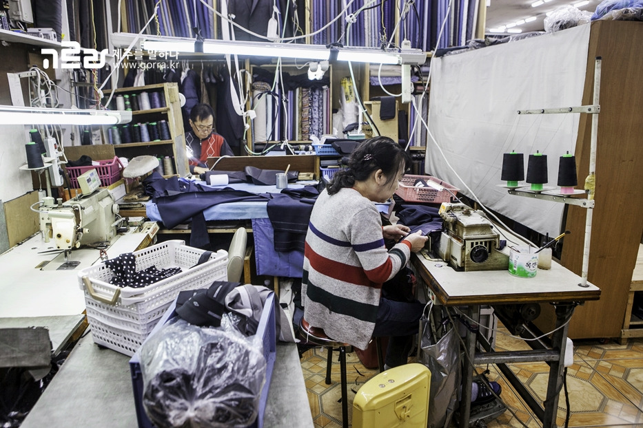원단을 고르고 치수까지 맞췄다면 제작만이 남았습니다. 이곳에서는 원단 재단, 미싱 작업 등 정장 제작에 필요한 모든 과정을 직접 제일사 내부에서 진행합니다. 가격이 착한 비결은 수작업을 바탕으로 한 서비스 정신에 있는 겁니다. 작업 기간은 열흘 안팎으로, 문의 시 더 빠른 제작도 가능하다고 합니다.