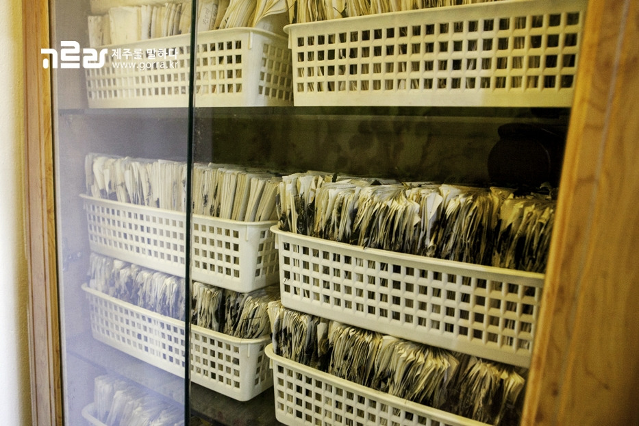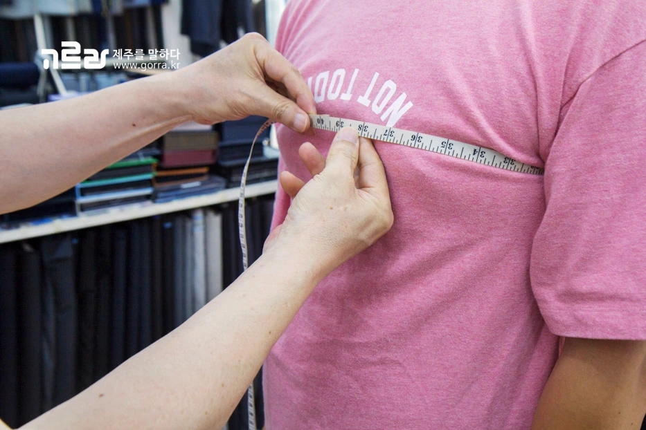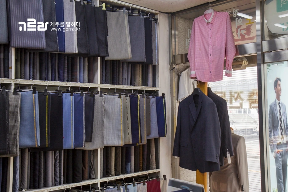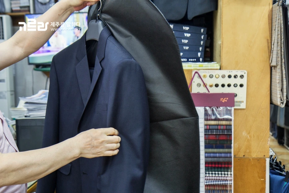 제주시청 근처에 위치한 제일사는 30년이 넘는 시간 동안 장인 정신을 이어오고 있는 남성 맞춤양복점입니다. 가게 한편을 채우고 있는 개인 치수표 종이 더미들이 지난 세월을 말해주는데요.