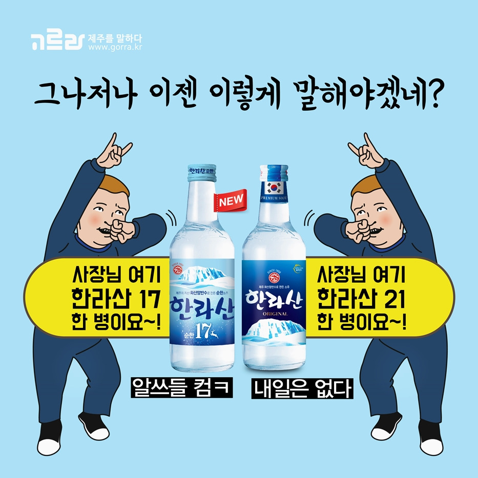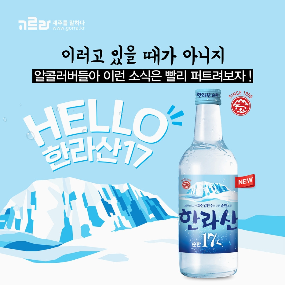 제주도의 대표적인 소주 한라산소주가 재탄생했어요! 기존의 디자인을 청량청량하게 변경한 데 더해 오리지널 저도주 제품까지 출시했다는 사실♪ 오늘(12일)부터는 리뉴얼 제품을 공짜로 받아볼 수 있는 <새로워진 내 이름을 맞춰봐!> 이벤트가 진행된답니다!