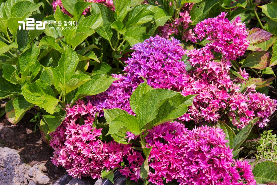 한눈에 매료되는 강렬한 보랏빛 수국 또한 이곳의 볼거리입니다. 이밖에도 아나벨, 떡갈잎수국 등 쉬이 보기 힘든 세계 수국종이 한 자리에 모여 있습니다.