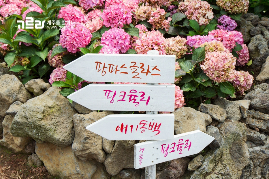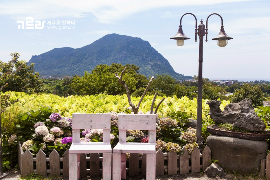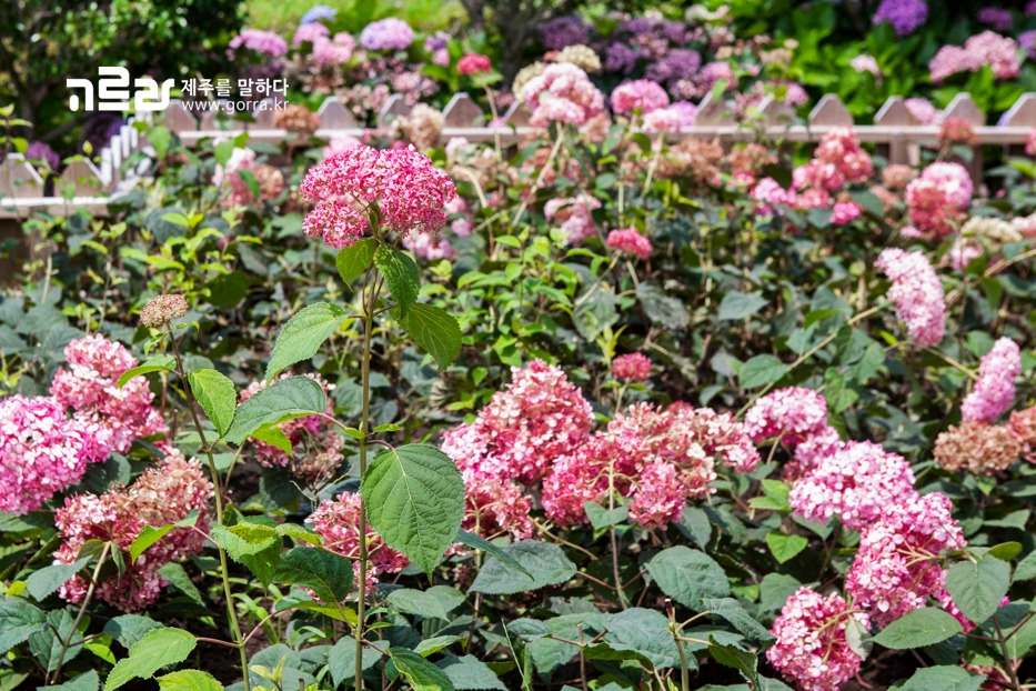마노르블랑은 2000여 평의 정원에 약 7000본의 수국이 식재된 제주 유일의 여름 수국 정원입니다. 수국 이외에도 다양한 종류의 식물을 감상할 수 있는 곳입니다.