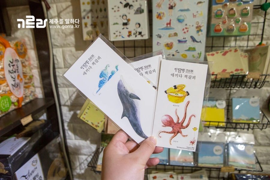 <제주애퐁당> 중문점에서는 제주를 담은 문구류도 만날 수 있는데요. 바다 친구들이 그려진 책갈피와 마스킹테이프, 제주도가 그려진 메모지 등 아기자기한 문구류 또한 다양하게 만나볼 수 있습니다.
