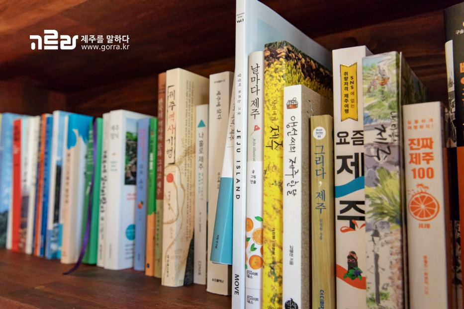 제주사랑방과 대칭을 이룬 제주책방은 제주도에서 발간되는 책들을 열람할 수 있는 공간압니다. 제주 관련 도서 중에서도 제주의 역사, 문화, 자연 정보를 다룬 자료들을 모아 놓은 작은 책방이에요.