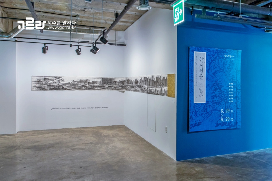 산지천갤러리 2, 3층에서는 지금 ‘화첩기행 / 2019 탐라순력도 : 산지천을 노닐다’가 진행 중입니다. 오는 8월 29일(목)까지 7인의 작가가 표현한 2019년의 산지천을 감상할 수 있어요.