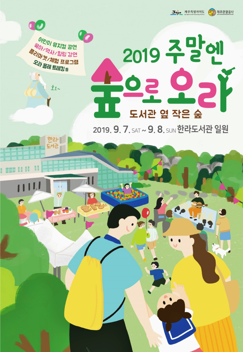 오라동 작은숲에서 펼쳐지는 힐링 피크닉 어떠세요? '2019 주말엔 숲으로 오라'를 찾으면 어린이 공연, 뮤지컬, 방선문트레킹, 어린이 플리마켓, 숲속놀이터체험 등 가족과 함께 다양한 프로그램을 즐길 수 있습니다.