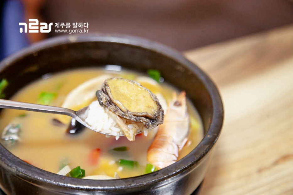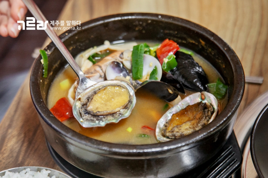 이곳의 대표 메뉴인 전복뚝배기는 깊고 진한 국물이 강점입니다. 된장 베이스로 푹 끓인 전복뚝배기는 상에 오르고 나서도 한참 동안 팔팔 끓어오릅니다. 토실한 전복과 딱새우, 홍합, 조개 등 해산물이 푸짐하게 들어가 국물이 개운하고 딱 떨어지는 맛을 지녔습니다.