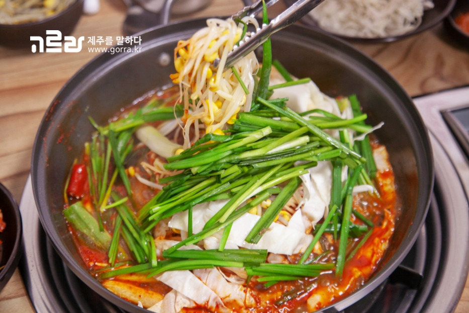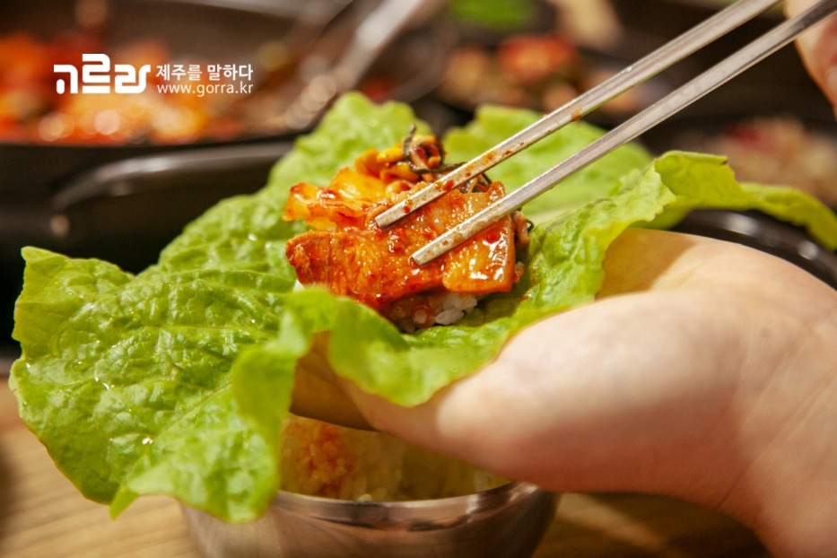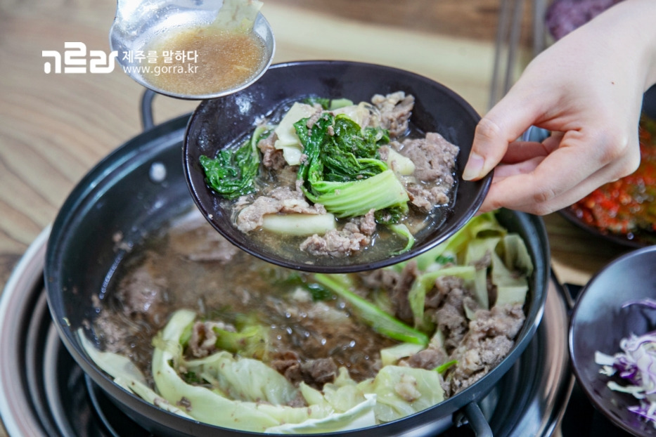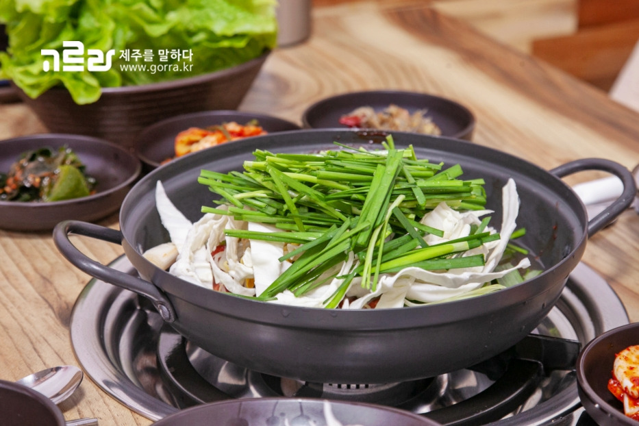 곁가지 음식으로 함께 나오는 맑은 콩나물국은 짭짤한 고기와 궁합이 참 잘 맞습니다. 제주산 생돼지고기로 만든 두루치기 메뉴는 흰쌀밥과 먹으면 더욱 맛이 살아납니다.